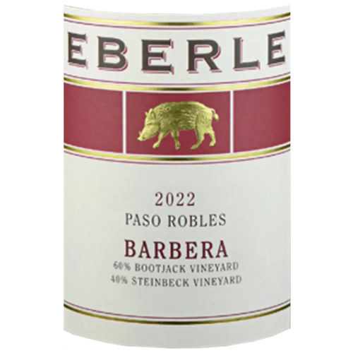 The 2022 Eberle Barbera is energetic with tart cherry, plum, and cocoa. Clean structure and juicy acidity, gold-medal quality.